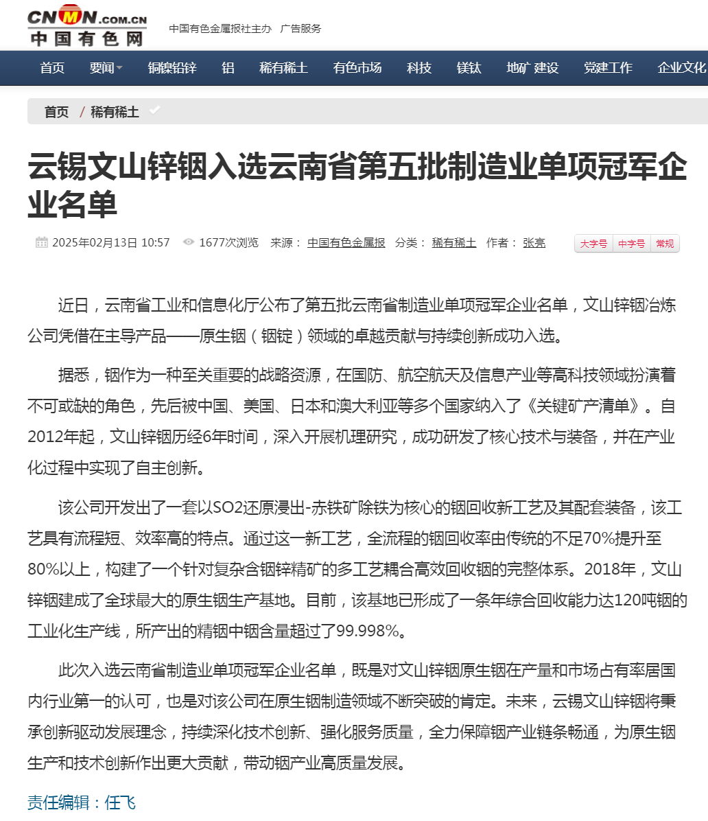 上一條:國(guó)務(wù)院國(guó)資委、云南國(guó)資、中國(guó)有色金屬報(bào):云錫股份構(gòu)筑競(jìng)爭(zhēng)新優(yōu)勢(shì) 奮進(jìn)“開(kāi)門(mén)紅”