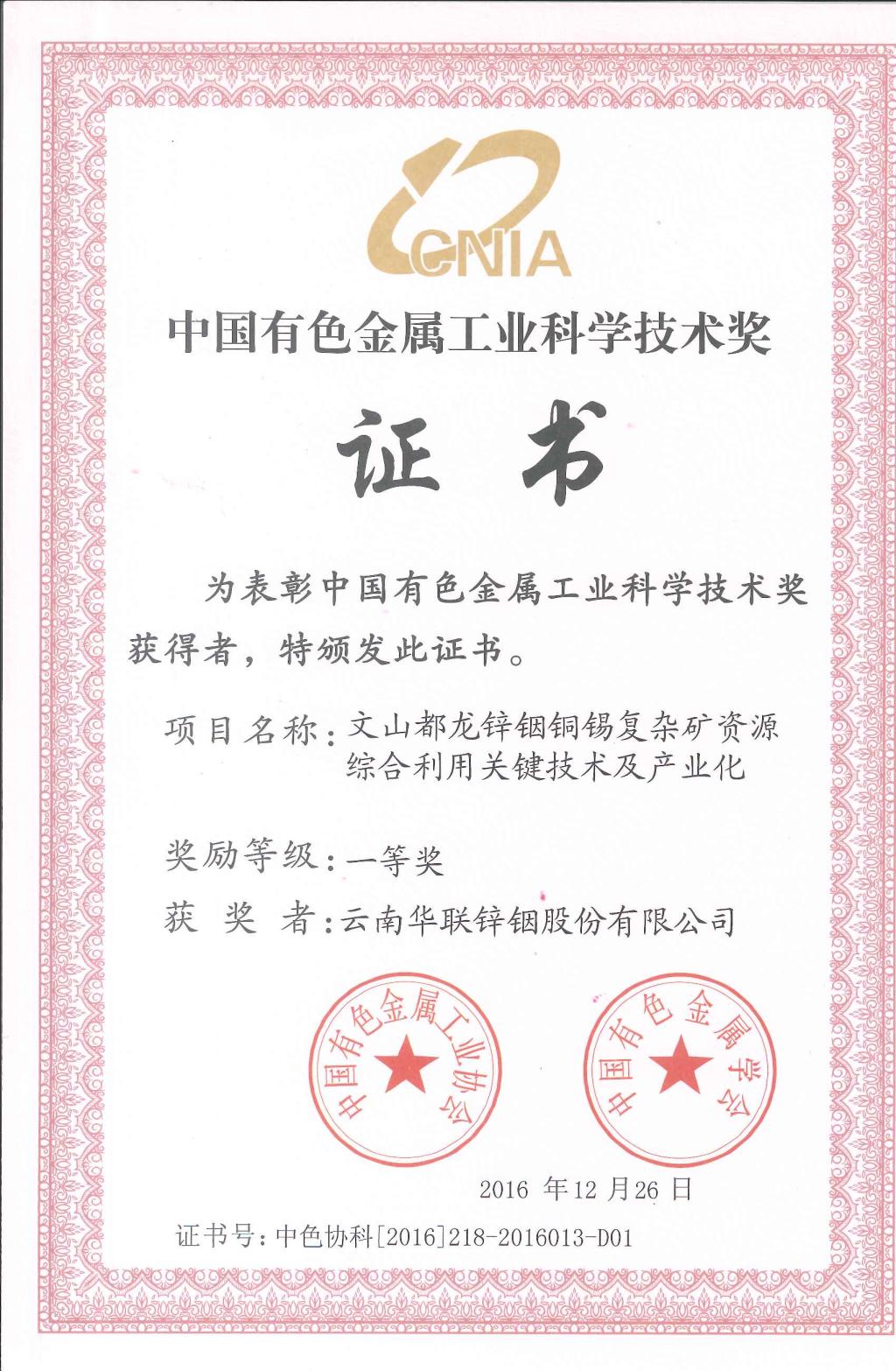 2011年以來累計投入科研資金3.4億元,實現(xiàn)科技創(chuàng)效4.74億元,取得了顯著的科技成果,其中,“銦鋅錫銅復雜多金屬礦資源高效綠色利用關(guān)鍵技術(shù)及產(chǎn)業(yè)化示范項目”榮獲2017年度中國循環(huán)經(jīng)濟協(xié)會科學技術(shù)一等獎;“銦鋅錫銅共伴生多金屬礦資源高效利用關(guān)鍵技術(shù)及產(chǎn)業(yè)化項目”榮獲云南省科技進步一等獎;“文山都龍鋅銦銅錫復雜礦資源綜合利用關(guān)鍵技術(shù)及產(chǎn)業(yè)化項目”榮獲中國有色金屬工業(yè)科學獎一等獎。