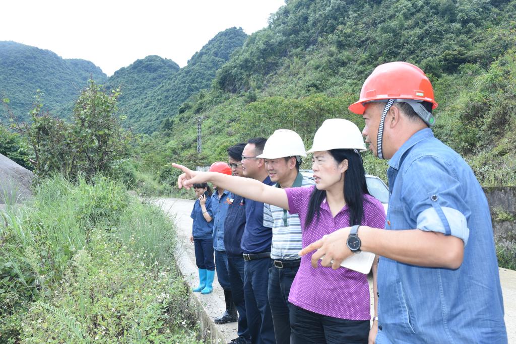 在象沖尾礦庫項目建設現場指揮部,楊奕敏聽取了庫區(qū)項目施工、建設進度匯報,詳細了解庫區(qū)初期壩、攔水壩、尾礦輸送管線、筑壩石料供應等在建工程情況,并到各子項目工地、石料加工、采取現場進行實地查勘。
