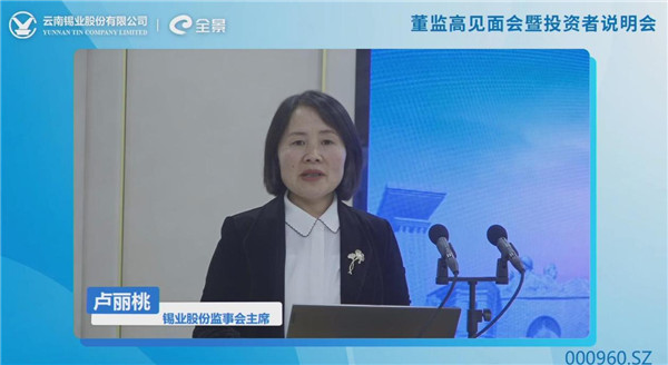 6月13日,錫業(yè)股份通過全景網(wǎng)平臺(tái)舉辦線上董監(jiān)高見面會(huì)暨投資者說(shuō)明會(huì),黨委書記、副董事長(zhǎng)吳君,董事長(zhǎng)、總經(jīng)理劉路坷帶領(lǐng)公司董監(jiān)高出席本次見面會(huì)并與行業(yè)分析師、投資者進(jìn)行了互動(dòng)交流。