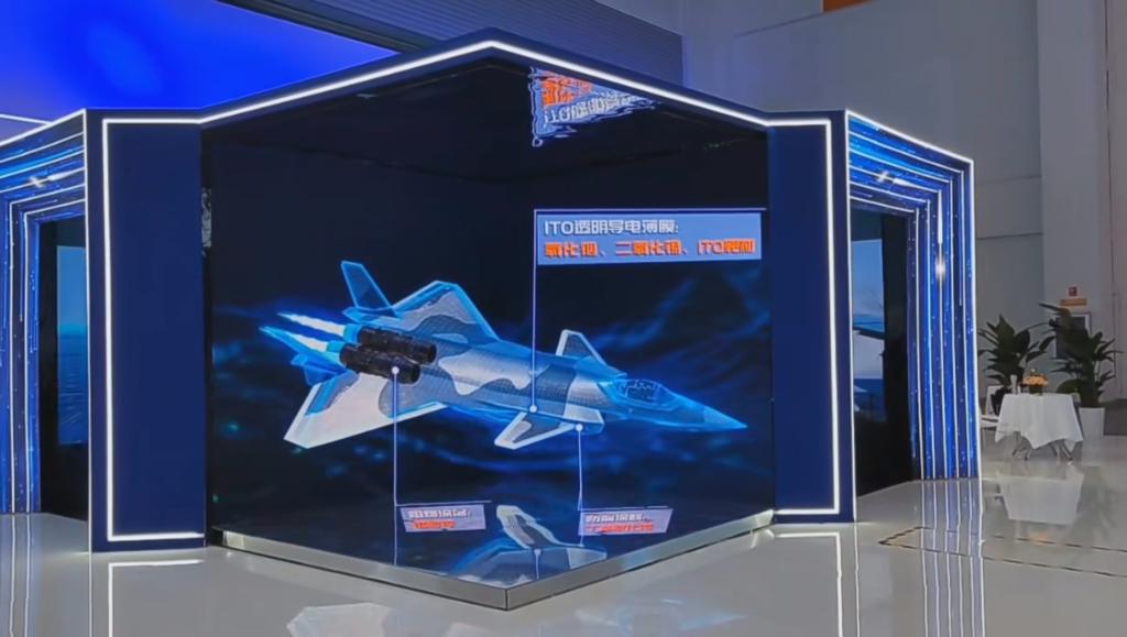 航母、衛(wèi)星、智能機(jī)器人……裸眼3D折角屏以極具視覺震撼的特效,生動展示錫基、銦基合金在大國重器制造中的應(yīng)用,成為制造業(yè)館的靚麗打卡點(diǎn)。