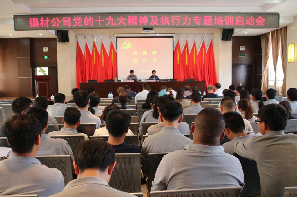 8月9日,錫材公司召開黨的十九大精神和執(zhí)行力專題培訓(xùn)啟動(dòng)會(huì),黨委書記、董事長王鵬飛作開班動(dòng)員,控股公司黨委巡察工作第三組組長黃梓嘉應(yīng)邀以“中國夢(mèng)執(zhí)行力”為主題開講第一課,為本次專題培訓(xùn)開了一個(gè)好頭。錫材公司80余名黨員干部現(xiàn)場聆聽了培訓(xùn)課程。