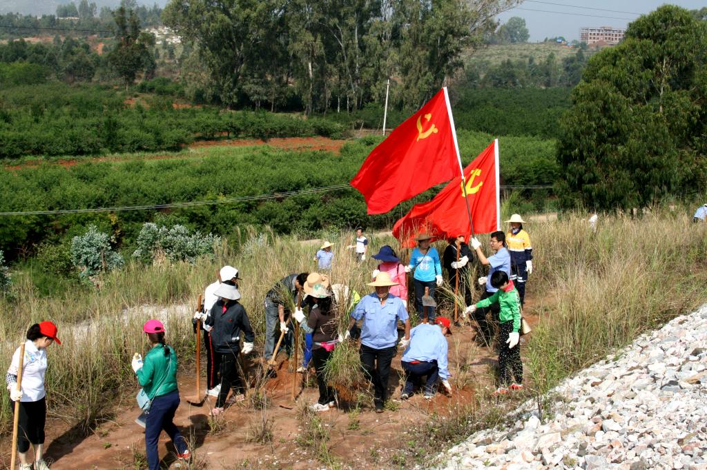 5月27日,兩面鮮紅的黨旗飄揚在官家山團山尾礦壩上,大屯錫礦機關黨總支、氧化礦車間黨支部近80名黨員、入黨積極分子聚集在黨旗下,種植草木,穩(wěn)固壩體,保護生態(tài)環(huán)境。