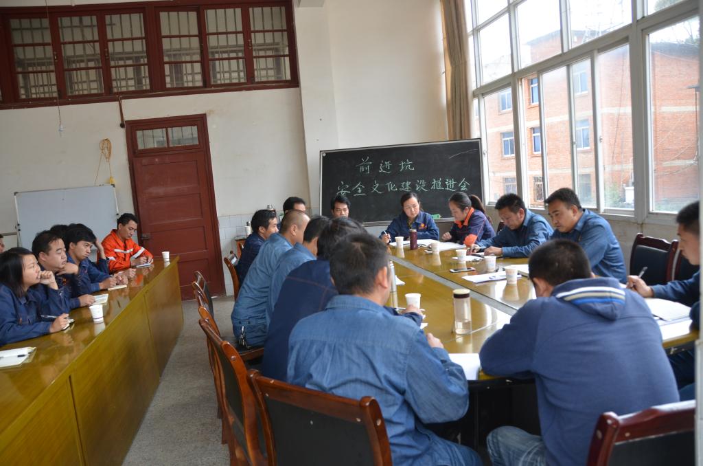 10月18日,卡房分公司在前進坑三樓會議室召開前進坑安全文化建設(shè)推進會。卡房分公司經(jīng)理劉長武、副經(jīng)理羅明及相關(guān)科室部門負責(zé)人,前進坑班子成員、安全員、值班長、隊組長等50余人參加了會議。