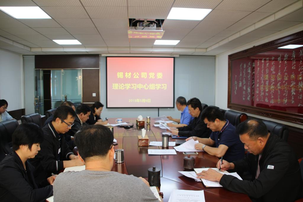 5月9日,錫材公司黨委理論學(xué)習(xí)中心組舉行第二次集中學(xué)習(xí)研討,深入學(xué)習(xí)貫徹習(xí)近平新時(shí)代中國特色社會(huì)主義思想,進(jìn)一步統(tǒng)一思想、凝聚共識(shí),用理論武裝頭腦、指導(dǎo)實(shí)踐,確保全年生產(chǎn)經(jīng)營和深改攻堅(jiān)目標(biāo)任務(wù)完成。