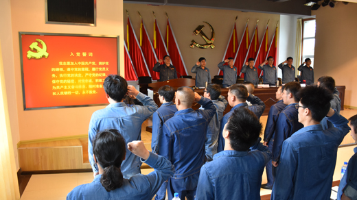 與會(huì)的全體正式黨員和預(yù)備黨員面對(duì)黨旗宣誓,莊嚴(yán)的誓詞激勵(lì)著每一名黨員牢記使命、奮勇前行。
