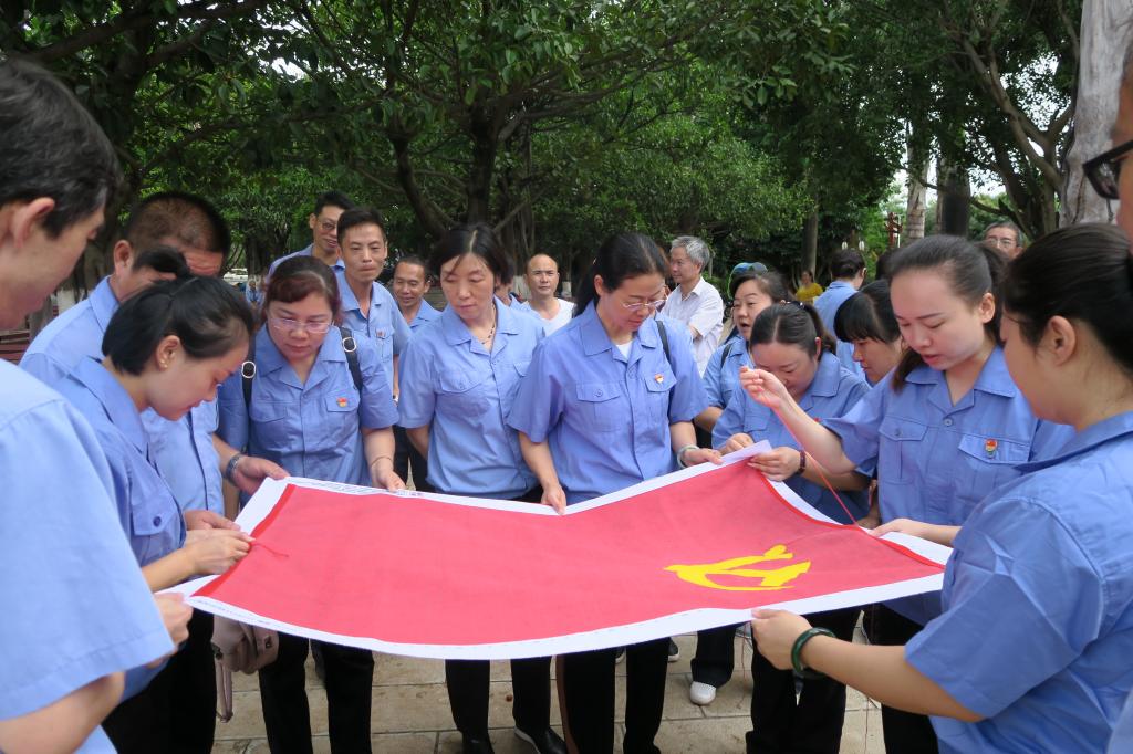 火紅的六月,激情的盛夏。一大清早,黨員們著裝整齊地來到南湖公園,向革命烈士紀念碑敬獻了鮮花,并集體列隊瞻仰革命烈士紀念碑,寄托哀思。隨之后,黨支部書記為17名黨員頒發(fā)“政治生日”賀卡。全體黨員在紀念碑前,面對黨旗重溫入黨誓詞。