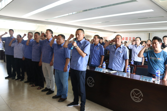 大會在莊嚴肅穆的《國歌》聲中拉開帷幕,面向鮮紅的黨旗,冶煉分公司領導班子帶領全體與會黨員舉起右手重溫入黨誓詞。