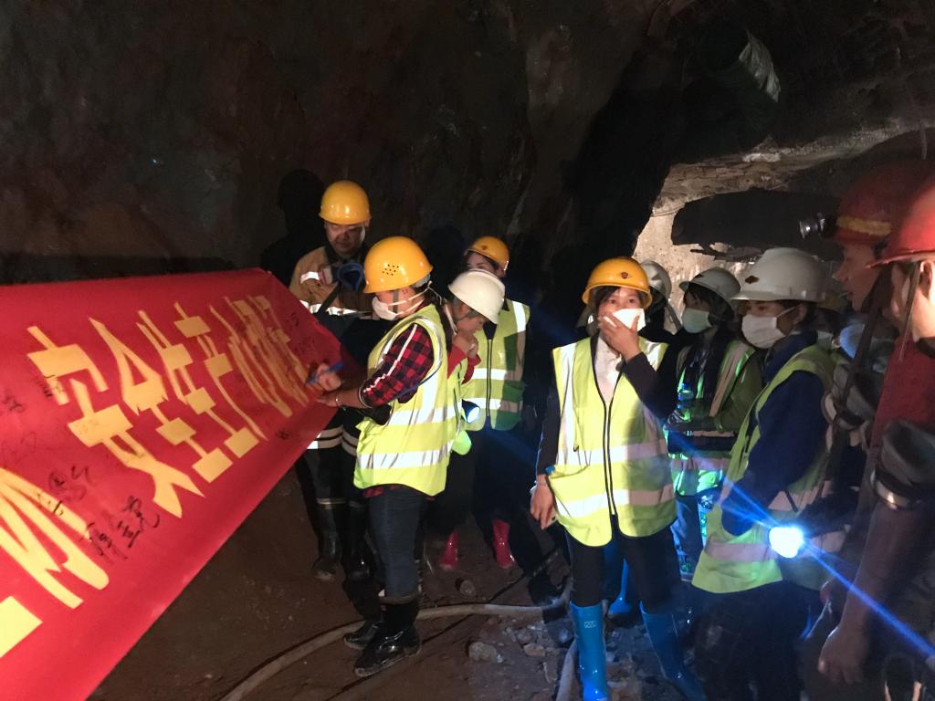 家屬們乘坐電瓶車來到1360大箐東掘進(jìn)一組采場(chǎng)迎頭后,不斷向親人訴說一路走來的感受,叮囑親人一定要按安全規(guī)定作業(yè)才會(huì)擁有一切。隨后,家屬們紛紛在“父母妻兒牽掛你,安全生產(chǎn)心切記”的標(biāo)語欄上,鄭重簽下了自己的名字。