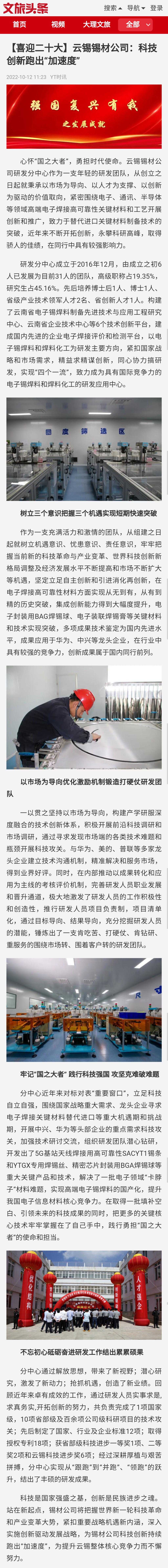 文旅頭條:【喜迎二十大】云錫錫材公司:科技創(chuàng)新跑出“加速度”