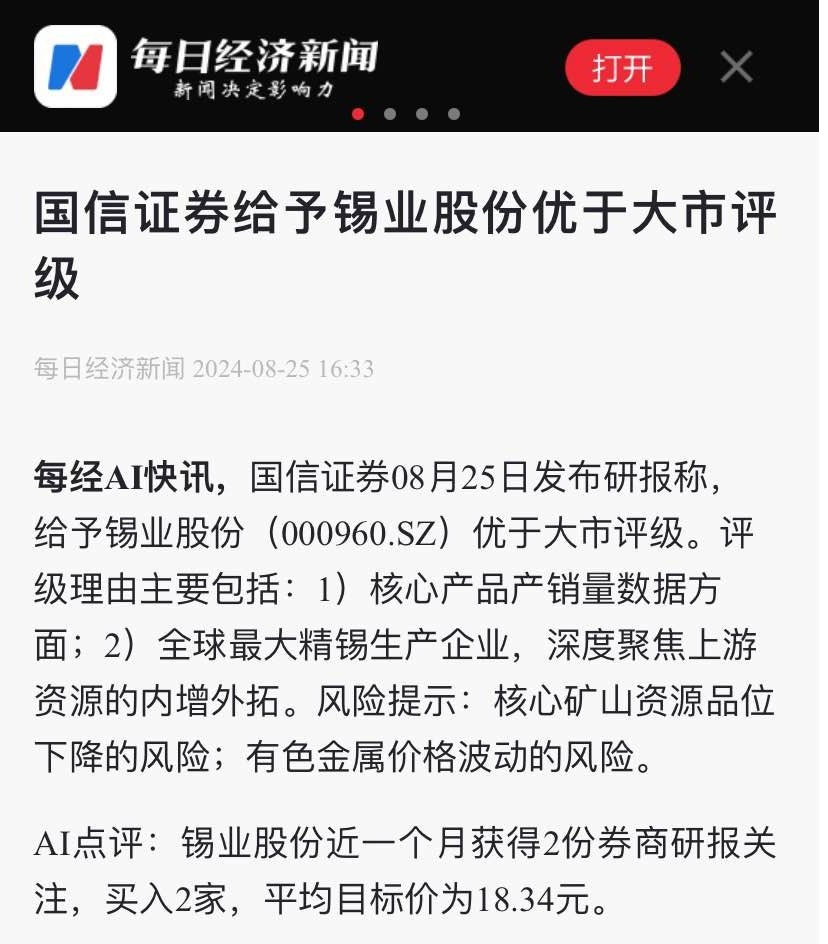 上一條:全景網(wǎng):[半年報]“錫望之光”行穩(wěn)向好!錫業(yè)股份產(chǎn)品量價齊升 盈利改善明顯